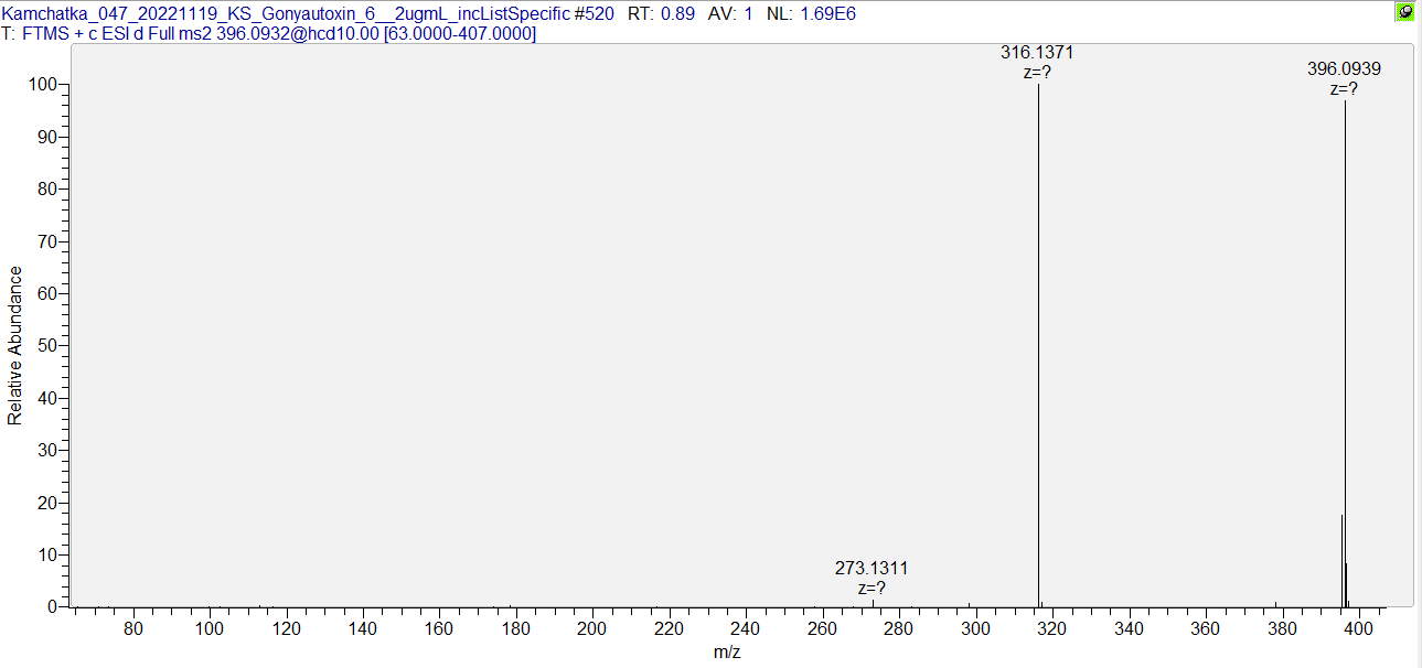 | >Gonyautoxin 6 (N-sulfocarbamoyl-Neosaxitoxin) (ИБХ РАН - Orbitrap Fusion Lumos) | ||||||||||||||